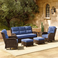 - 6-Piece Outdoor Set, Perfect for Gatherings: This 6-piece set includes 1 couch, 2 swivel chairs, 2 ottomans and 1 tables, with a footprint of 150"L x 80"W for decks, poolside patios and sunrooms. Ottomans can tuck under the coffee table to save space when not in use, and can act as footrests or extra seats when needed. The set provides ample seating and comfortably accommodates up to 7 people for family leisure and social gatherings