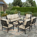- 【A PRACTICAL OUTDOOR FURNITURE SET】Including 4 x metal cushioned chair, 2 x ottoman, 1 x 3 seat sofa. Perfectly fitting with your backyard, poolside, balcony, garden and deck to create an outdoor comfort zone. A REAL PRACTICAL patio conversation set perfectly meet the requirement of enjoying outdoor leisure time like a meal or host a party with your family or friends.