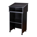 - [ Commercial Grade Build Quality ] The CoreCombo Series mobile lectern is built from wood-based panels with a scratch-resistant thermofused laminate surface. The integrated storage shelf measures 19.5 inches wide by 14.5 inches high, and the removable tabletop lectern supports up to 75 pounds. Four easy-roll casters, including two locking, provide stable mobility for daily institutional use.