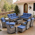 - Seamless Blend of Outdoor Leisure and Comfort: The 11-piece wicker patio furniture set, featuring two 3-seat sofas, four swivel rocker chairs, two matching ottomans, two side tables, and a coffee table. Designed to bring warmth and style, this wicker patio conversation set transforms any backyard, porch, or poolside into a serene and inviting retreat.