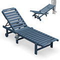 Outdoor Chaise Lounge, Patio Chaise Lounge Chair with 5 Positions Adjustable Backrest, HDPE Lounger with Rolling Wheels & Cup Holder for Pool, Navy