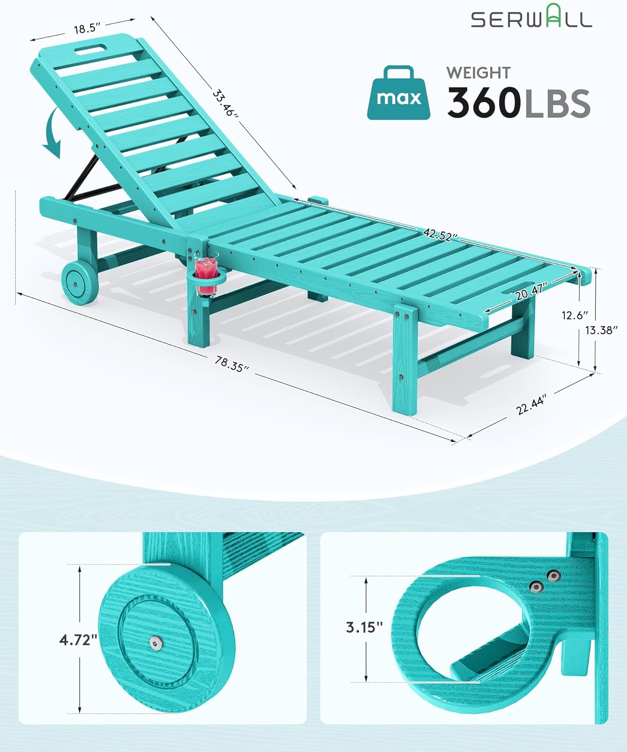 - Rolling Wheels & Handles: This patio chaise lounge comes with convenient rolling wheels and handles, pull on the handle to move it easily to follow the sun or find shade. Enjoy the sun and warm weather on this adjustable chaise lounge, our hdpe lounge chair is perfect for poolside, patio, garden, beach, or deck