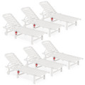 Outdoor Chaise Lounge Set of 6, HDPE Pool Lounge Chair with 5-Position Adjustable Backrest, Patio Lounger with Rolling Wheels & Cup Holder for Pool, White