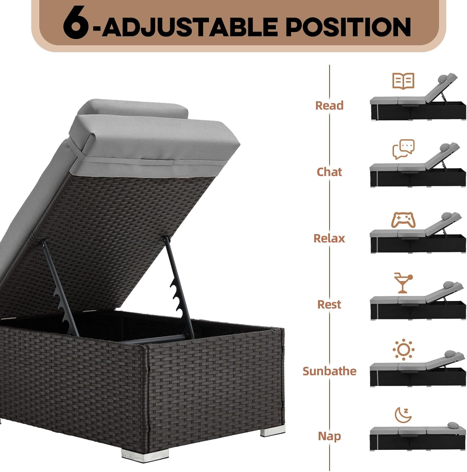 - 6-POSITION ADJUSTABLE BACKREST & REMOVABLE HEADREST: Find your perfect angle for reading, napping, or sunbathing with our 6-position reclining backrest, offering more flexibility than standard 5-position chairs. The adjustable headrest provides personalized support to cradle your neck and head, ensuring complete relaxation for your upper body