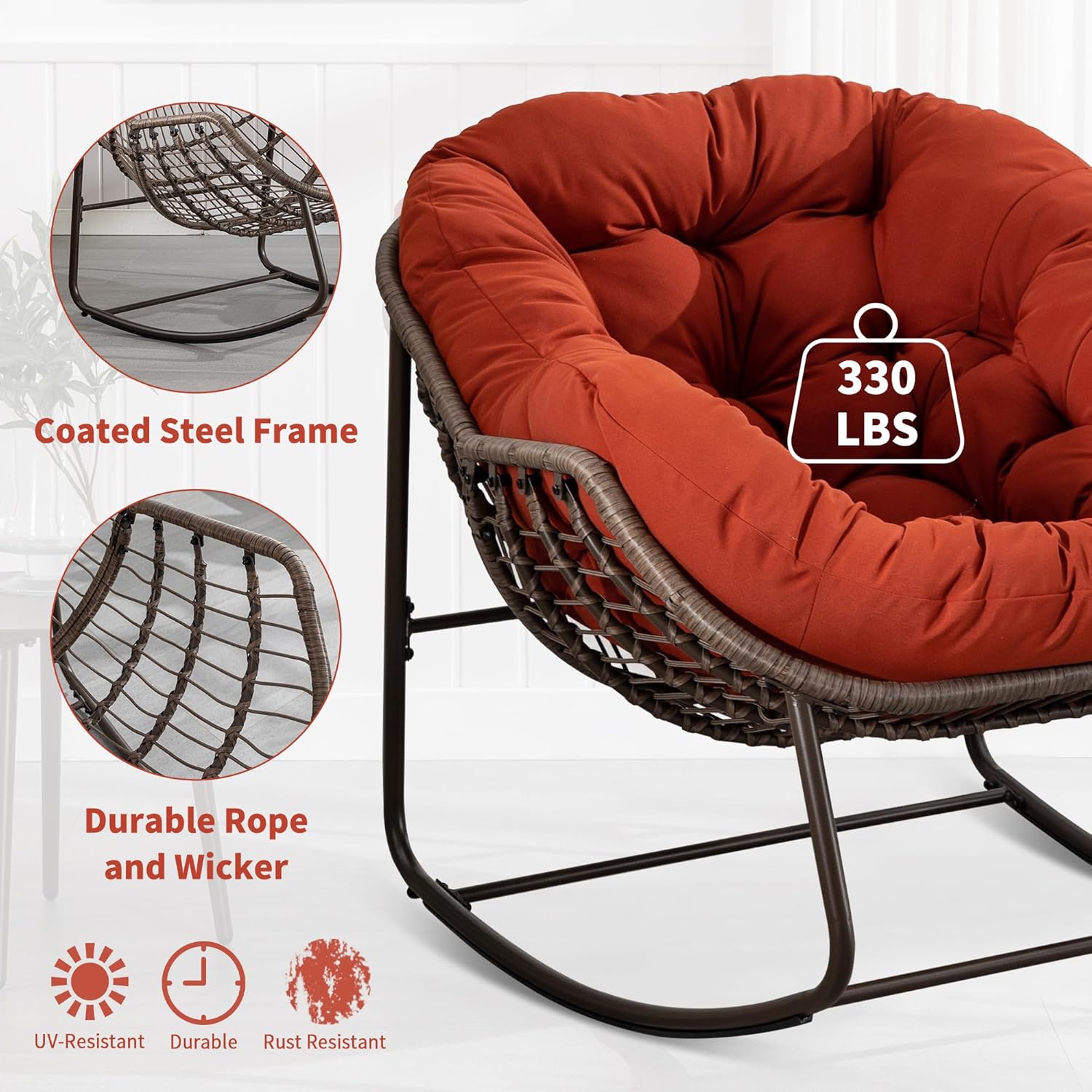 - INDOOR & OUTDOOR SCENES: This versatile chair is ideal for both indoor and outdoor settings, including gardens, decks, poolside, and living rooms. Enjoy the comfort and fun of this saucer rocking chair anytime, whether indoors or outside