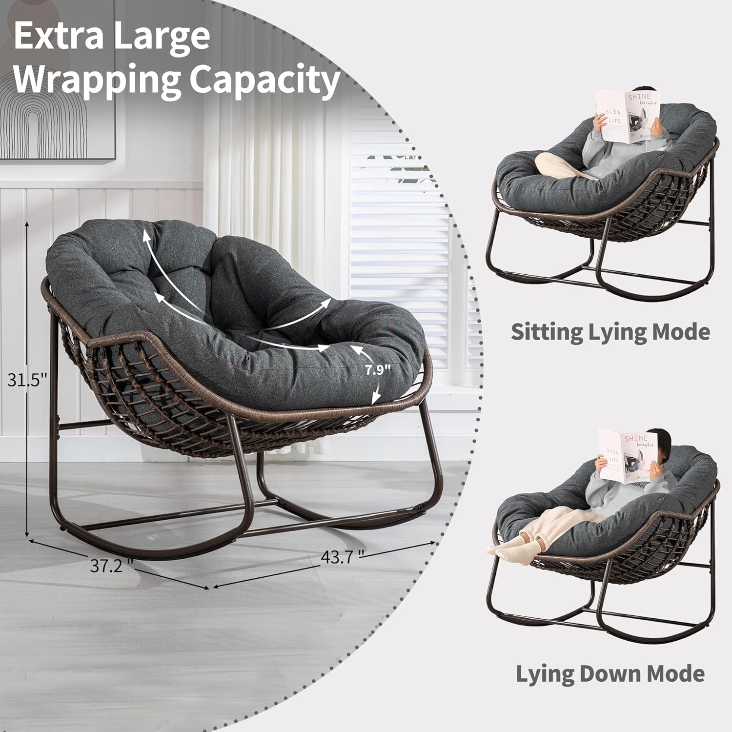 - EGG SHAPED ROCKER: This large egg rocking chair measures 43.7" D x 37.2" W x 31.5" H, it has an elegant egg shape that wraps you in its comfortable structure and swings 30° back and forth, rocking gently and smoothly to give you maximum comfort to rest