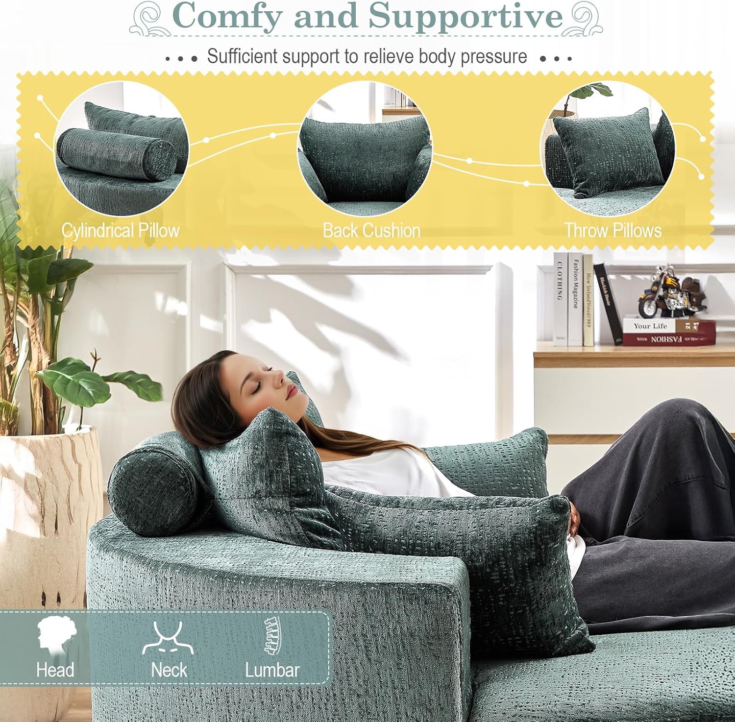 - Oversized Leisure Chaise Lounge: Equipped with 10-inch wide square arms, providing loose and leisurely arm support. The 36"W *32.5"D seating is spacious enough for curling up, reading a book, or napping on the sofa. An extra round pillow behind the backrest provides better support for your back or neck