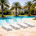 Patio Chaise Lounge Chair Set of 4, HDPE Outdoor Lounge Chair with Cup Holder, 5 Positions Adjustable Pool Lounger with Rolling Wheels for Poolside, Deck, Sunbathing, White