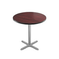 - [ Round Counter Height Café Table ] A round counter height café table with an X-Base that pairs naturally with stools for casual dining, team huddles, and standing work in cafeterias, commons areas, and office cafés. The 1¼ inch laminate top in Mahogany or Gray Nebula gives a tough, easy to clean surface while the heavy duty steel base provides confident stability in active spaces.