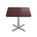 - [ Square Dining Height Café Table ] A square dining height café table with a strong X-Base that fits neatly against walls or in grid style layouts for cafeterias, teacher lounges, and office cafés. The 1¼ inch laminate top in Mahogany or Gray Nebula gives a clean, generous surface for two to four chairs and the steel base provides dependable stability for everyday breakfast, lunch, and laptop use.