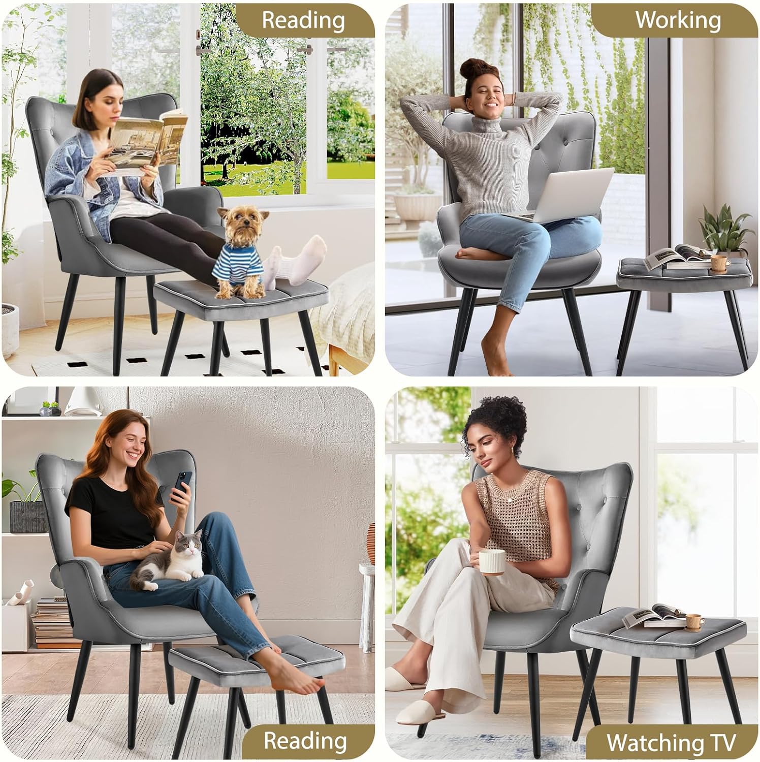- Premium Velvet Fabric - Unique Design: Made of high-quality velvet fabric with ergonomic wingback and armrest design, all of which reflect modern fashion, relieve the pressure exerted on your lumbar spine, and increase your comfort. Featuring a unique pleated stitching pattern on the backrest that adds a touch of modern elegance to any space, the fine craftsmanship and premium texture bring a luxurious retro vibe to your home.