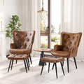 Set of 2, Modern Accent Chair with Ottoman, Upholstered Reading Chair with Ottoman Set, Wingback Chairs with Backrest & Metal Legs, Tufted-Button Armchair for Living Room, PU, Brown