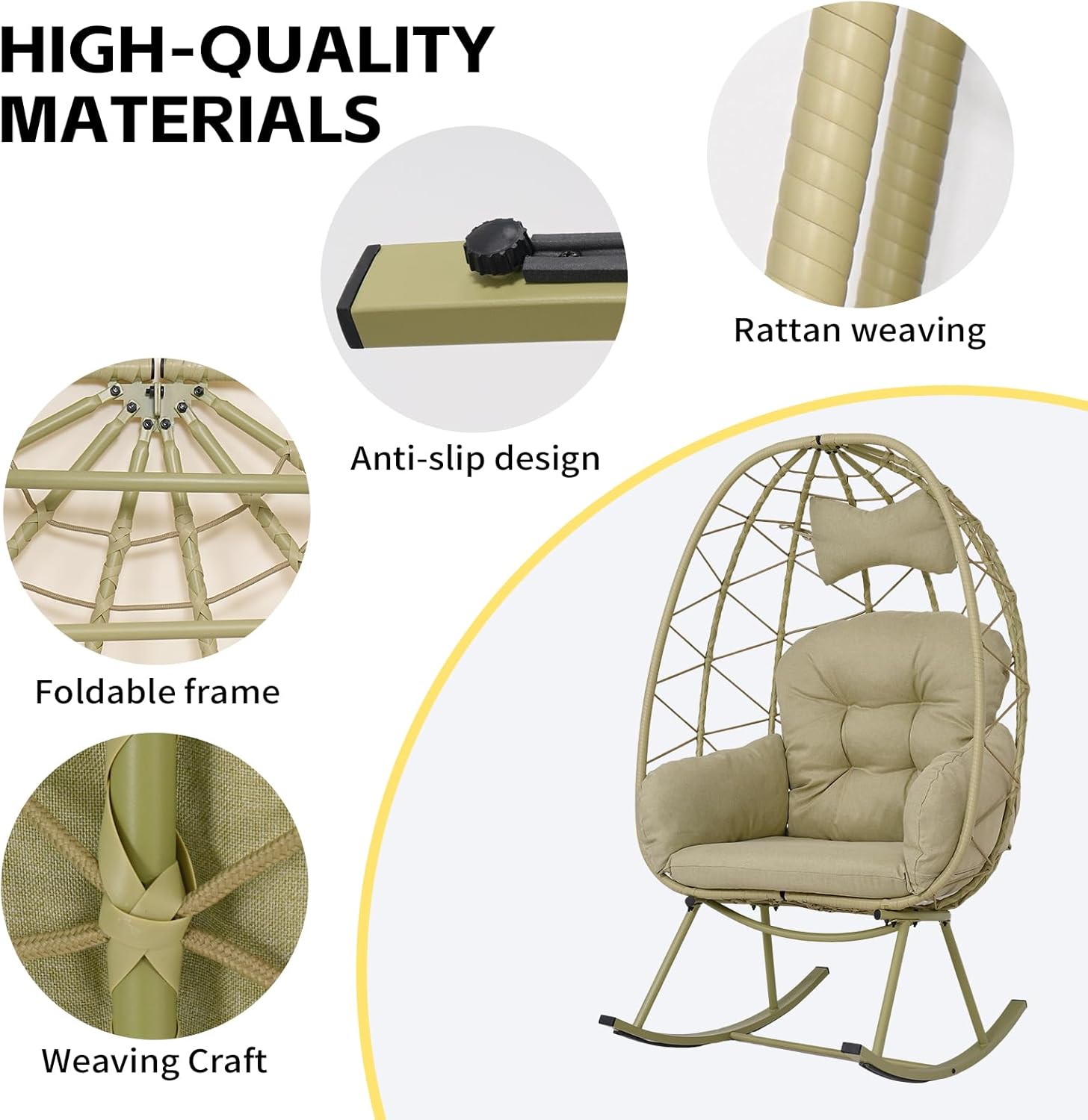 - 【Sturdy & Durable】This egg patio chair offers an elevated swinging experience with its extra-sturdy, thickened metal frame and a remarkably supports up to 330lbs. It's reinforced frame is crafted for stability and durability, available in elegant golden brown finishes that bring a luxurious modern touch to any setting