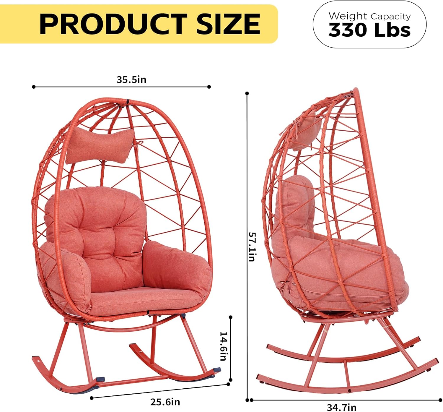 - 【Sturdy & Durable】This egg patio chair offers an elevated swinging experience with its extra-sturdy, thickened metal frame and a remarkably supports up to 330lbs. It's reinforced frame is crafted for stability and durability, available in elegant golden brown finishes that bring a luxurious modern touch to any setting
