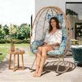 - 【Sturdy & Durable】This egg patio chair offers an elevated swinging experience with its extra-sturdy, thickened metal frame and a remarkably supports up to 330lbs. It's reinforced frame is crafted for stability and durability, available in elegant golden brown finishes that bring a luxurious modern touch to any setting